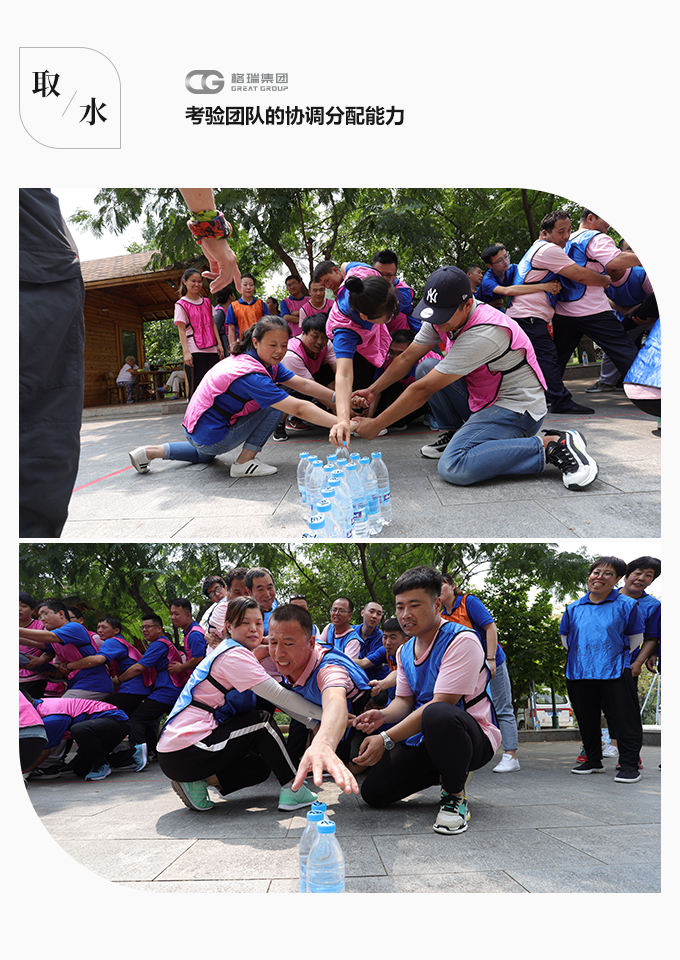 群龍取水,考驗的是團隊協調分配的能力,哪些人先取哪些人后取,其余人怎么樣協助及保護。