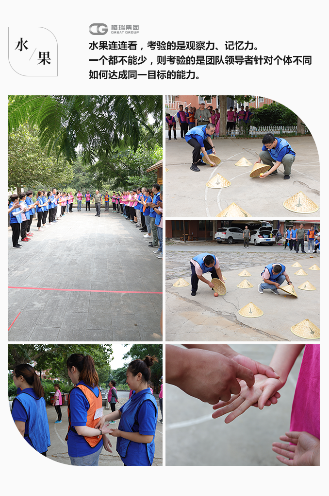 水果連連看,考驗的是觀察力、記憶力。一個都不能少,則考驗的是團隊領導者針對個體不同如何達成同一目標的能力。